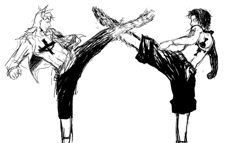 って足下に転がってる男を蹴り転がして、みたいな一連ありまして、