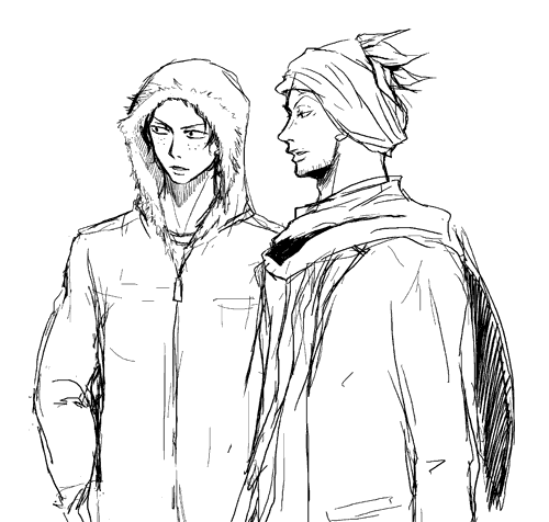 つなぎを腰でしばっただけ